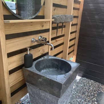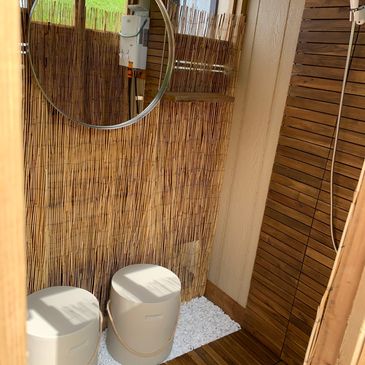 We have a beautiful outdoor washroom with hot shower, to make your stay perfect. Please note that this option is only for guests participating in Retreat Experiences. No exceptions.