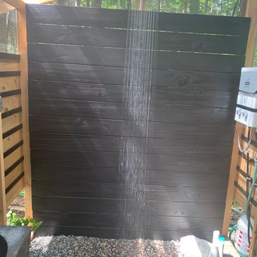 Shared and out of this world HOT outdoor shower. Pictures don't do it justice. This shower will have you feeling like you have left Ontario!