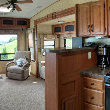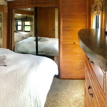 Surprisingly spacious and super clean, this RV is very comfortable. Sterio, cable tv and internet, it has it all. Bright and full of windows with amazing views!!