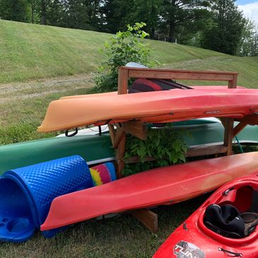 Kayaks, canoes and a paddle boat all included in your stay, for your enjoyment.