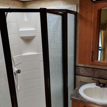 Enjoy a hot shower in your 3 peice bathroom. Shampoo, conditioner and body wash provided.
