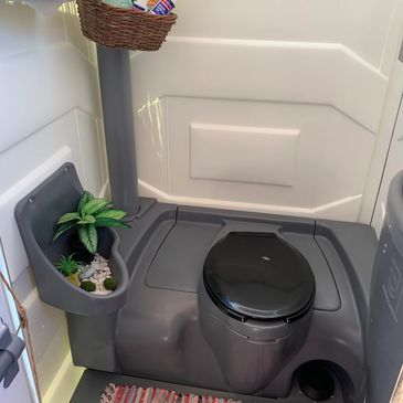 Not just any old porta potty. The private cabana porta potty is super clean and of course, decked out! Cute as a button!
